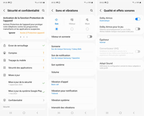 Sur notre modèle de test, la mise à jour Google Play datait du 1er mai 2023 et celle de la sécurité du 1er septembre 2023 ce qui est assez récent pour des tests réalisés courant septembre.