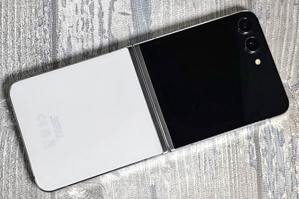 Rappelons le mode Flex qui consiste à placer la partie supérieure à 90 degrés par rapport à la partie inférieure. Le Galaxy Z Flip5 est certifié IPX8 donc totalement étanche à l’eau, mais pas à la poussière.