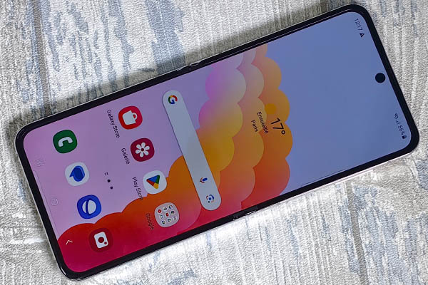 L’écran interne du Galaxy Z Flip5 utilise toujours une dalle AMOLED flexible de 6,7 pouces en diagonale lorsqu’il est totalement ouvert. Il est toujours au format 22:9. Il y a encore des rebords sur tout le pourtour de la surface d’affichage, mais ils sont plus fins que sur le précédent et notamment au niveau de la partie centrale, à la charnière. Ils ne gênent pas au quotidien, notamment lorsqu’il s’agit de réaliser des gestes pour naviguer dans les menus. Les bords sont assez fins. On profite d’une fréquence de rafraîchissement de 120 Hz. La fluidité est adaptative qui signifie que c’est le mobile qui gère la fréquence pour l’adapter en fonction de l’application en cours d’utilisation et ainsi trouver le meilleur compromis entre fluidité et autonomie. Il est toutefois possible de bloquer la fréquence à 60 Hz.