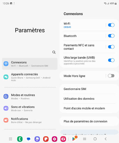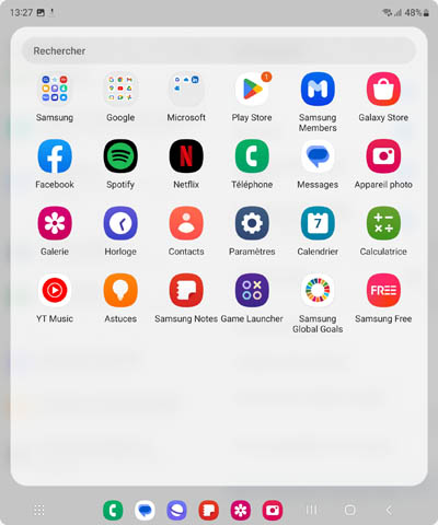 Comme sur le Galaxy Z Fold4, il y a une barre des tâches qui s’affiche en bas de l’écran. Il est possible d’afficher jusqu’à 4 applications récentes alors que sur le précédent, cette option était limitée à 2 applications. Pour avoir un affichage qui occupe toute la surface de l’écran, il est possible de masquer cette barre des tâches. En pliant le mobile, le mode Flex s’active automatiquement proposant, sur l’un des volets la vidéo, par exemple, et sur l’autre, les moyens de contrôle.
