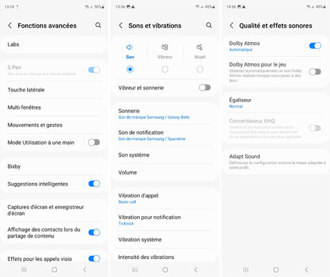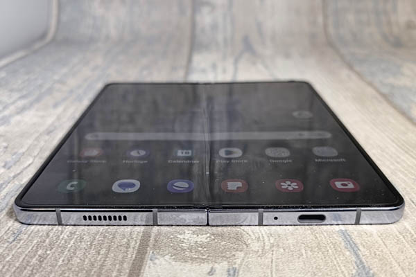 Le son délivré par le Galaxy Z Fold5 est donc stéréo. Il est peu déséquilibré et assez agréable à l’écoute. Il manque toutefois de basses, comme sur à peu près tous les mobiles, mais on peut apprécier le bon équilibre tonal et la justesse du spectre. Le téléphone est compatible Dolby Atmos.