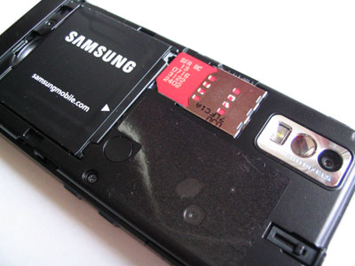La musique s'en tire aussi bien. Le téléphone propose le lecteur audio inauguré dans le Armani. Il utilise en fait l'interface croix pour avancer, reculer et contrôler le volume. La qualité audio ne frise pas les sommets mais s'avère tout à fait correcte, même pour un usage quotidien. Le port pour la carte mémoire est d'ailleurs le bienvenu pour augmenter la capacité initiale de 130 Mo. On regrette toutefois que ce port soit situé sous le cache de la batterie. Mais nous ne mettrons pas un carton rouge à Samsung juste un orange ! En fait, ce slot n'est pas sous la batterie, donc pour y accéder, il faut certes enlever le cache-batterie, mais pas la batterie en elle-même. Du coup, on n'est pas obligé d'éteindre le téléphone, c'est toujours ça de gagné ! Samsung a même le bon goût de fournir une carte microSD de 1 Go avec le mobile.