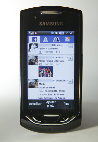 La philosophie du Player Star 2 (S5620) est simple : accumuler les fonctions sans vider le porte-monnaie. Ce petit Samsung est équipé comme un mobile haut de gamme : antennes 3G, WiFi, GPS et prise casque. Mais son prix se rapproche plutôt du milieu de gamme : 250? tout rond. Somme qui tombera probablement à 200? dans quelques semaines. Le Player Star 2 est équipé de l'interface maison de Samsung (TouchWiz), intégrant une suite d'applications sociales dont les désormais incontournables Facebook, Myspace, Twitter et Messenger. Pour un peu, la fiche technique du Player passerait pour celle d'un smartphone. Mais le Player Star 2 n'est pas un smartphone. Il est impossible de lui rajouter des applications choisies dans un catalogue de plusieurs milliers de références. C'est un défaut, mais à 250?, on peut décemment tolérer un petit sacrifice.