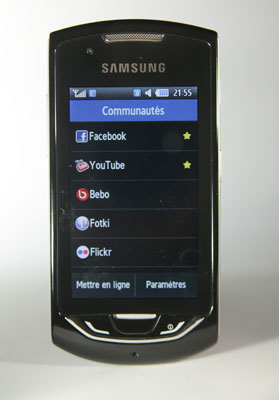La fonction caméscope n'est pas un point fort non plus. Les vidéos sont capturées au format 320x240 pixels, autant dire « timbre poste ». Les images sont plutôt agréables et bien contrastées. Mais elles saccadent lorsqu'on ne filme pas un plan fixe. Il est possible de poster ses vidéos et ses photos sur Youtube, Facebook, Twitter, Picasa, etc. Attention, cette fonction n'est pas disponible par défaut : il faut l'activer. Pour ce faire, il faut se rendre dans le menu Communautés. Encore faut-il le savoir. Quant au paramétrage, il n'est pas d'une simplicité exemplaire.