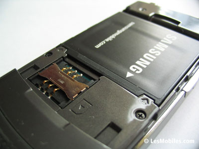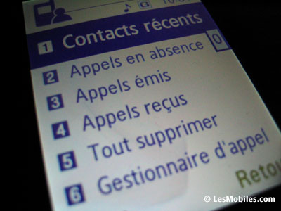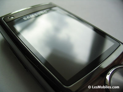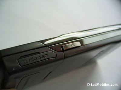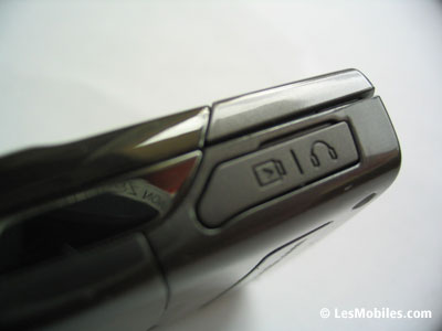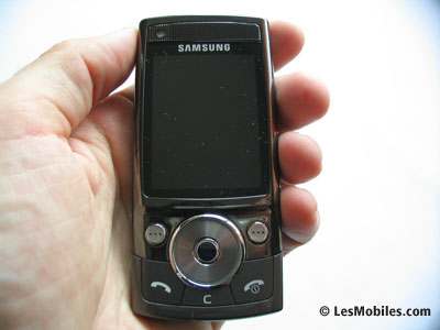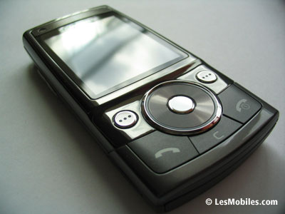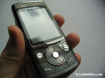 Toujours sur la face avant, on remarque en haut à gauche un composant que l'on prend d'abord pour une caméra VGA. En y regardant de plus près, on s'aperçoit qu'il s'agit en fait d'un capteur de luminosité, utile notamment pour les photos ou pour régler automatiquement la luminosité de l'écran. Sans surprise, ce dernier arbore une diagonale de 2,2 pouces et se révèle coloré (16,7 millions de couleurs !) et lumineux à souhait, le constructeur coréen loupant rarement les écrans de ses mobiles. Ne vous fiez pas à la vidéo de démonstration de piètre qualité fournie par Samsung, le rendu est superbe pour peu que vous preniez la peine d'y mettre vos propres vidéos ou de les télécharger. Enfin, sur la partie haute de la face avant, le G600 offre un écouteur qui fait aussi office de haut-parleur et qui occupe toute la largeur. Le son délivré est de bonne qualité mais manque un peu de puissance en mode haut-parleur.