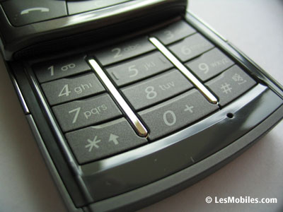 Faire coulisser le slide révèle un clavier alphanumérique aux touches larges, qui tombent bien sous les doigts. Ce n'est pas ce téléphone qui va vous poser des problèmes pour composer un SMS ! Le petit point situé entre les touches « 0 » et « # » est en fait l'emplacement du micro.