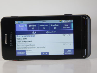 Le lecteur d'emails est simple à utiliser. Mais ici encore, la résolution modeste de l'écran rend une partie des emails illisibles ou inconfortables. A noter, un assistant aide à régler son email. Il est remarquablement efficace.