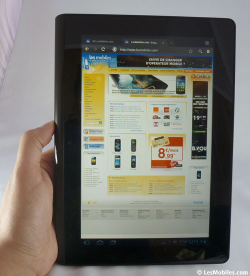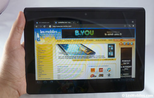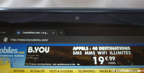 On retrouve le même navigateur que sur les autres tablettes Android, celui de base sur Honeycomb. Les pages s'ouvrent rapidement, et le défilement est fluide. Et puisque nous sommes sur Android, on dispose aussi du flash qui fonctionne à merveille sur la tablette, aucun ralentissement à noter. On peut ouvrir jusqu?à 16 onglets sur le navigateur, un chiffre qui semble bien suffisant.