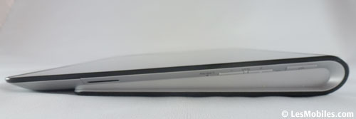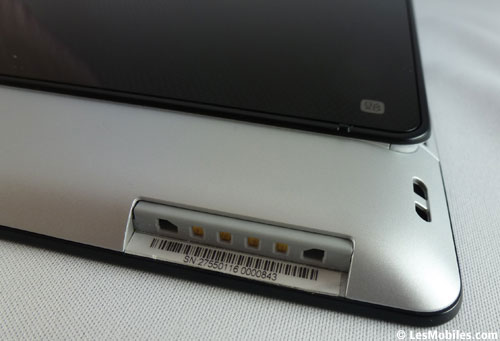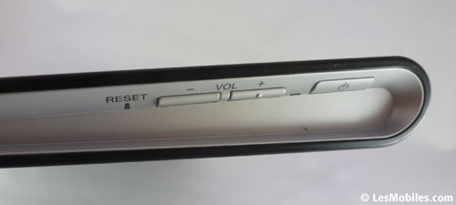 Les boutons de volumes et d'allumage sont situés dans le creux de la tablette, vraiment pratique lorsque celle-ci est utilisée en paysage. Cette disposition devient bien moins évidente lors d'un usage en portrait, dommage. Il faut aussi savoir qu'en haut de la tranche droite, une LED de notifications assez lumineuse est présente, un bon point. On notera en revanche que les haut-parleurs sont plutôt mal placés, on aura tendance à les boucher en posant nos doigts le long de la tablette (en paysage).
