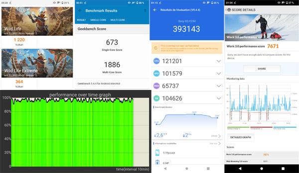 Afin de tester les performances brutes offertes par le mobile, nous l’avons soumis à plusieurs outils de mesure dont voici les principaux résultats.