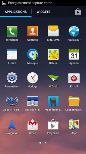 Pour le reste, l'interface reste assez classique. Elle se compose d'écrans d'accueil sur lesquels il est possible de placer des widgets, des dossiers d'applications et des raccourcis vers ces applications. Ces dernières sont sagement rangées dans un menu, là encore de manière classique, sous forme de grille.