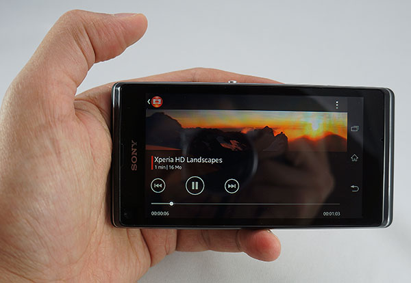 En revanche, Sony s'est tout de même laissé aller à une petite mesquinerie. La capture de vidéo est ici limitée à une résolution HD 720p, alors que la configuration matérielle de l'appareil est capable de supporter l'enregistrement de vidéo en Full HD 1080p. Mais une telle résolution 720p aurait pu faire l'affaire pour les moins exigeants si la qualité était au rendez-vous. Or ce n'est pas le cas. De manière assez incompréhensible, le niveau de détails passe de bon pour les photos à carrément mauvais ici. Même sur l'écran du smartphone, les vidéos apparaissent comme un peu pixellisées. Le Xperia L n'a donc clairement pas de quoi pavoiser de ce point de vue. Ce qui est dommage que ce mobile est l'un des très rares à l'heure actuelle à proposer l'enregistrement de vidéo en HDR.