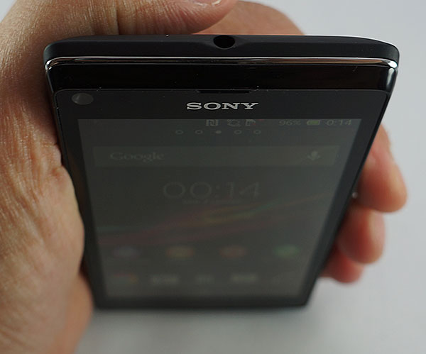 Car pour le reste, le repli en bas de la face avant, plus marqué que celui que l'on retrouve sur le haut, et les lignes générales ne dégagent pas vraiment une impression de modernité. Nous laisserons le jugement du look aux sensibilités de chacun. Le revêtement en plastique gommeux (soft touch) de la face arrière est pour sa part très plaisant et offre à l'appareil une prise en main agréable. On regrette en revanche que Sony ne se soit pas montré un peu plus attentif au gâchis d'espace. Pour vous donner un ordre d'idée, le Xperia L propose des dimensions plus ou moins équivalentes à celles de smartphones dotés d'écran d'une taille de 4,7 pouces, alors que son afficheur tactile culmine à 4,3 pouces.