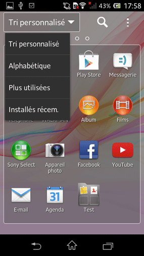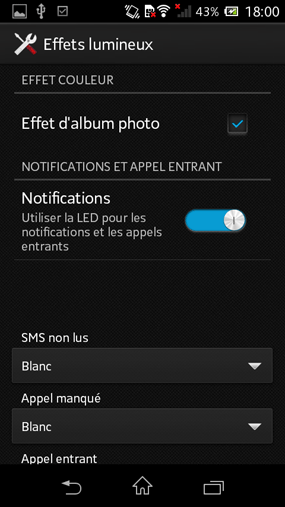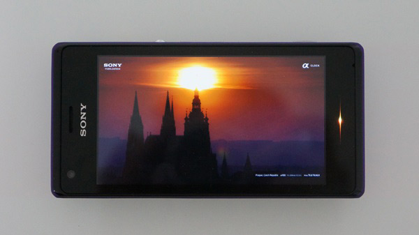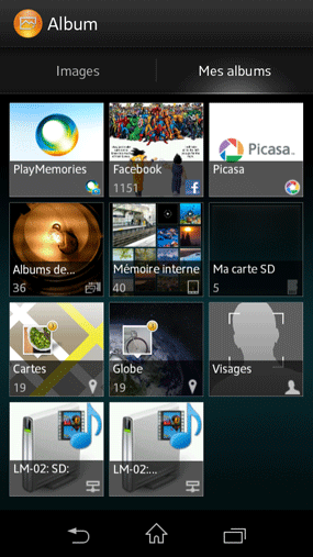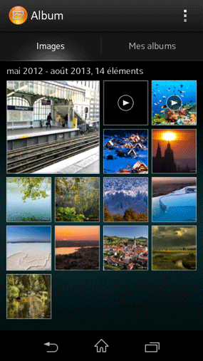 Commençons avec son application Album, qui revisite la Galerie de Google sans trop la bousculer. L'application se révèle assez classique si ce n'est qu'elle permet de retrouver ses albums photos issus de Facebook, Picasa ou PlayMemories, le service de stockage en ligne de Sony. Notons que la LED située sous l'écran s'illuminera, pendant quelques secondes, de la couleur dominante au sein de la photo affichée à l'écran. Sans réel intérêt.