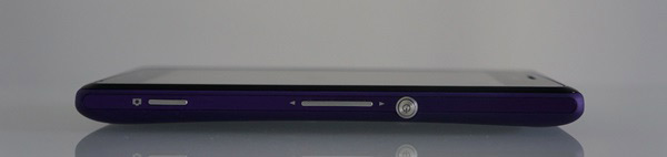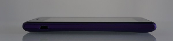 Les seuls boutons du terminal se situent alors sur son flanc droit et sont au nombre de trois : le bouton de mise en route évoqué plus haut, les boutons de contrôle du volume puis le déclencheur pour la fonction photo. Notons que ces deux derniers n'ont pas bénéficié de la finition en aluminium du premier puisqu'ils sont en plastique. Les connectiques se partagent les autres côtés : Jack 3.5 sur le dessus et microUSB sur le flanc gauche. Ce dernier s'est d'ailleurs vu attribuer une fonction autre que l'accueil de la prise adéquate. Sa découpe relativement large sert ainsi de prise pour retirer le capot arrière et permettre d'insérer carte SIM et microSD dans les emplacements prévus à cet effet, ou encore de retirer la batterie amovible. En pratique, la manipulation s'est révélée laborieuse la première fois du fait que le capot en question remonte jusqu'aux flancs du terminal et ne permette pas de s'appuyer sur une structure fixe pour l'en détacher. Heureusement, le système s'est montré bien plus souple par la suite.