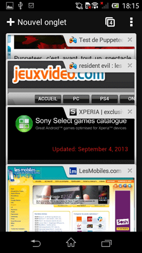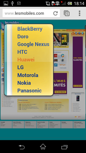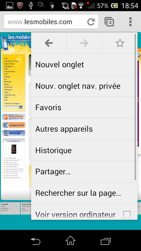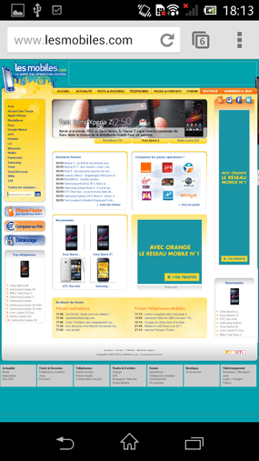 Concernant la navigation web maintenant, celle-ci repose évidemment sur le navigateur Chrome de Google, installé en natif depuis Android Jelly Bean. Si celui-ci n'est pas à votre convenance, libre à vous d'installer celui de votre choix parmi le large catalogue du Play Store. Cela ne devrait toutefois pas être nécessaire dans la mesure où Google a mis au point un navigateur pour le moins complet puisqu'il offre une barre d'adresses et de recherche unifiée, la navigation par onglets (lesquels sont d'ailleurs synchronisables avec ceux ouverts sur un autre appareil vous identifiant) ou encore une petite fenêtre de zoom qui apparaît automatiquement lorsque vous cliquez sur un lien trop petit et entouré d'autres liens, afin d'éviter toute confusion. Ce dernier point est d'ailleurs essentiel dans le cas du Xperia M puisqu'à moins d'y aller avec un cure-dent, vous vous écarterez très souvent de votre itinéraire initial. Ne serait-ce que pour la lecture du contenu, le pinch-to-zoom deviendra rapidement votre meilleur allié contre la taille et la définition de l'écran. Heureusement, le processeur de Qualcomm fait à nouveau merveille et vous suivra sans rechigner.