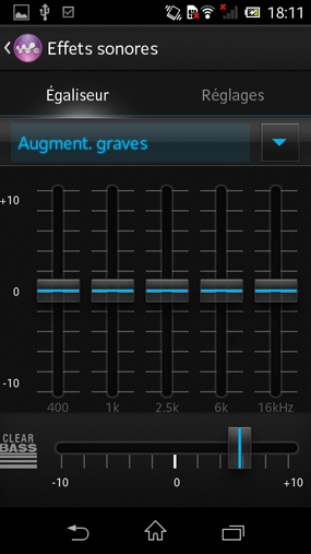 Walkman, le baladeur audio nommé après les baladeurs de la marque se révèle des plus complets. Outre des raccourcis pour les boutons de lecture dans le centre notifications et sur l'écran de veille, on y trouve évidemment la possibilité de créer différentes listes de lecture en plus d'un traitement AudioClair+ censé améliorer le rendu sonore ou toute une batterie d'égaliseurs. Trois profils sont d'ailleurs paramétrables par l'utilisateur si toutefois aucun des égaliseurs prédéfinis ne trouvait grâce à ses oreilles. Ajoutez à cela la prise en charge des formats les plus courants et vous aurez vite oublié l'application native de Google. Si toutefois pour une raison X ou Y, cette dernière remporte toujours votre préférence, sachez que les égaliseurs de Sony y sont également accessibles. Le son restitué par le haut-parleur est quant à lui plutôt bon sans pour autant être exceptionnel. Le volume sonore est acceptable et pourra être poussé au maximum sans craindre une saturation trop importante.