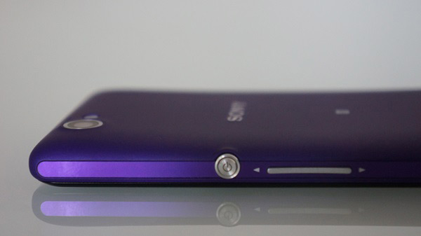 En contrepartie, cette petite épreuve rassure quant à la qualité de fabrication et la robustesse du terminal qui ne dispose pas d'une armure en verre trempé à l'inverse des Xperia Z et Z1. C'est dans du plastique qu'a été fondu le capot du Xperia M, qui n'est d'ailleurs pas sans rappeler celui des Xperia Arc et Arc S avec sa forme voutée. Il épouse ainsi parfaitement la forme d'une main et offre une prise en main des plus confortables. S'ajoute à cela un effet soft-skin agréable au toucher, même s'il a tendance à imprimer un peu trop les traces de doigts. Pas autant que l'appareil photo toutefois. Heureusement, celui-ci a été placé dans le coin supérieur gauche, là où les droitiers devraient rarement laisser traîner leurs doigts. Même chose pour le flash et le micro, situés juste à côté, pour des questions d'ordre avant tout pratique cette fois, lors de la capture. En revanche, le haut-parleur qui occupe la partie inférieure a toutes les chances de trouver une paume de main à la sortie. Notons un petit logo NFC, pris entre ceux de Sony et de la gamme Xperia, qui nous rappelle la présence d'une telle technologie à bord.