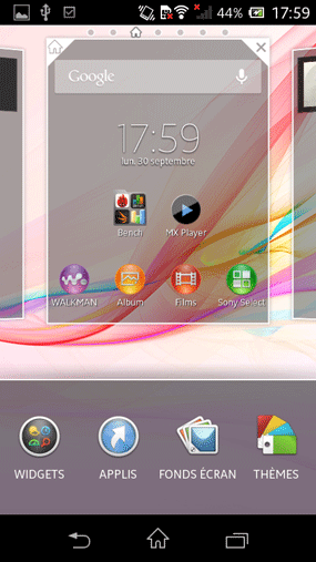 Point trop n'en faut. Comme pour les autres terminaux de la marque, cet Xperia M ne se démarque pas par une interface utilisateur particulièrement travaillée. Sony laisse les fonctions gadgets aux autres et préfère contribuer à l'offre de logiciels préinstallés, sur laquelle nous nous attarderons un peu plus loin dans ce test. On retrouve ainsi une interface Android, ici en version 4.1.2 Jelly Bean, relativement classique dans son utilisation alors que Sony y a ajouté quelques effets visuels, en plus de différents thèmes. L'écran de déverrouillage à l'effet store vénitien n'en est qu'un exemple. Celui-ci intègre par ailleurs un raccourci vers le lecteur musical, la fonction photo ou mènera simplement à la dernière application utilisée ou, à défaut, au bureau.