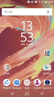 En le mettant sous tension, le Xperia X affiche Android 6.0 Marshmallow affublé de la nouvelle interface Xperia UI. Il s'agit du premier modèle sous cette version de l?OS. Explorons donc ensemble les quelques changements apportés à l'interface. Nous avons évoqué ces changements dans un article datant d'avril dernier. Les voici en vrai. Et le résultat est presque à la hauteur des attentes et des promesses, puisque l'ensemble se rapproche davantage de l'effet d'une simple surcouche cosmétique et moins d'une ROM customisée. Tout d'abord, vous aurez remarqué que l'interface présentée par Sony sur l?écran principal est moins chargée que les précédentes. Les icônes des applications maison ont également légèrement changé (avec des designs plus en rondeur).