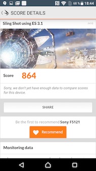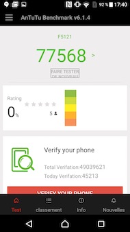 Cela se traduit dans les différents benchmarks utilisés régulièrement dans nos colonnes par des scores plutôt bons, mais pas à la hauteur d'un flagship haut de gamme, que ce soit vis-à-vis des standards de 2016 ou des standards de Sony. Nous comparerons les scores du Xperia X avec ceux du Xperia Z5, pour des raisons évidentes, ainsi que quelques concurrents chinois (Meizu, Huawei). Nous ne les comparerons pas avec les HTC 10 et LG G5 : ces deux derniers se positionnent largement au-dessus.