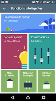 Cette dernière est l'une des rares applications développées par un constructeur pour tester les différents éléments techniques du téléphone. Ça peut être utile si vous rencontrez des problèmes ou des situations inhabituelles. Autres fonctions intéressantes à noter : la rubrique « Fonctions intelligentes » du menu « réglages ». Vous y trouverez des pas-à-pas pour prendre en main le téléphone, des conseils et des raccourcis pour activer certaines fonctions avancées, comme le nettoyeur intelligent (qui vous libèrera un peu de place dans l'espace de stockage) ou le mode Stamina.