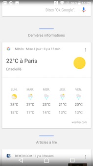 Une fois le smartphone allumé, le XZ Premium présente une nouvelle version de l'interface Xperia, ici basée sur Android 7.1 Nougat. Il n'y a pas de grand changement dans cette interface depuis le Xperia XZ et le Xperia X Compact, testés dans nos colonnes cet automne. Vous remarquerez quelques changements esthétiques. Les icônes ont été légèrement repensées. Le widget « horloge » par défaut est maintenant horizontal et non plus vertical, ce qui n'a absolument aucune incidence sur la place disponible sur ce premier écran. Pour le reste, tout est à sa place, notamment l?écran Google Now accessible à gauche de l?écran d'accueil, ou encore les publicités présentes dans le moteur de recherche du volet des applications. Nous ne sommes pas fans de cette pratique mercantile.