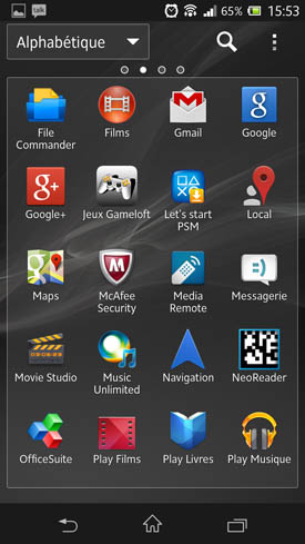 Android 4.1 Jelly Bean est la suite logique d'Android 4.0 Ice Cream Sandwich et la suite illogique d'Android 2.3. Pour faire plus clair, il y a beaucoup de différences en passant de la version 2 à la version 4 et très peu en passant de la version 4 à la version 4.1. Cela dit, ce « très peu » est quantitatif, car si l'on parle en termes de qualité, la version 4.1 est un pas énorme. D'abord, il faut noter qu'elle est la première à intégrer la suite logicielle Google Apps revue et corrigée. Dès le premier allumage, vous aurez donc les classiques Gmail, Gtalk, Calendar ou Maps, mais aussi Chrome, Google+, Play Livres ou Play Films. Sony a bien compris l'importance de cette suite pour l'utilisateur et on félicite le constructeur d'avoir évité de la dénaturer : par exemple, il n'y a pas, sur l?Xperia Z, de navigateur autre que Chrome.