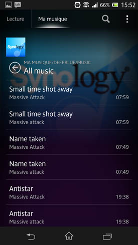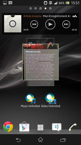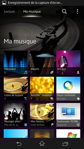 Comme sur son Xperia T, Sony fait revivre la marque Walkman et a donné ce nom à son lecteur MP3. Au-delà des pouvoirs magiques du marketing, il faut reconnaître que l'application est parfaitement bien programmée. Jolie et ergonomique, vous retrouverez dans un cover-flow original tous vos morceaux. Rien de révolutionnaire, mais l'ensemble fait ce qu'on lui demande et avec des paillettes pour les yeux c'est encore mieux. On regrette seulement que le lecteur n'ait pas intégré Google Music : l'application de Google vous permettra, elle, de lire aussi vos fichiers stockés localement. Du coup, si vous ne voulez pas passer de l'un à l'autre, vous aurez tendance à rester sur celle qui vous offre le plus de fonctionnalités pour écouter vos morceaux?