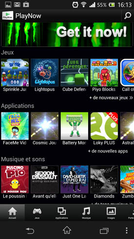 Mais voilà, malgré tout, Sony n'a pas encore enterré ses démons. On croyait qu'avec le Xperia Z, le constructeur aurait fait table rase et n'aurait proposé que ses applications premium : il n'en n'est rien. Ainsi, vous retrouverez par exemple des doublons agaçants. Le vieux Play Now avec son interface immonde, héritée d'Android 2.x côtoie désormais le hub Playstation Mobile. Pourquoi garder les deux et ne pas fusionner les offres ? Aucune idée. En plus, le nouveau est loin d?être parfait : par exemple, sachez qu'il ne s'affiche pas en mode portrait? si c?était logique sur un Xperia Play, et encore, c'est un enfer sur un smartphone classique.