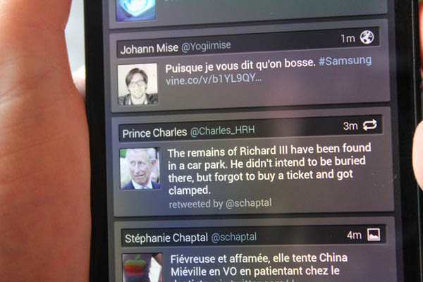 Non, le plus important, c'est l?écran en lui-même. En l'allumant pour la première fois, nous restions partagés sur cette dalle, pour une raison simple : nos yeux habitués à l?AMOLED attendent des contrastes très marqués et des noirs profonds. Ici, ce n'est pas le cas, le contraste est léger et tout tend inexorablement vers un gris très foncé que nous n'avons pas réussi à corriger en jouant avec les paramètres. Cela dit, cette première impression est à mettre au compte de la comparaison avec la concurrence : une fois ce détail passé, on se prend une baffe quotidienne et on oublie bien vite ce léger manque de contraste. Tous les usages mobiles sont sublimés par cet Xperia Z, de la navigation sur Internet à la photographie en passant par la lecture de vidéos ou le surf sur les réseaux sociaux. Chaque usage tire parti de l'une ou l'autre des caractéristiques de cet écran.