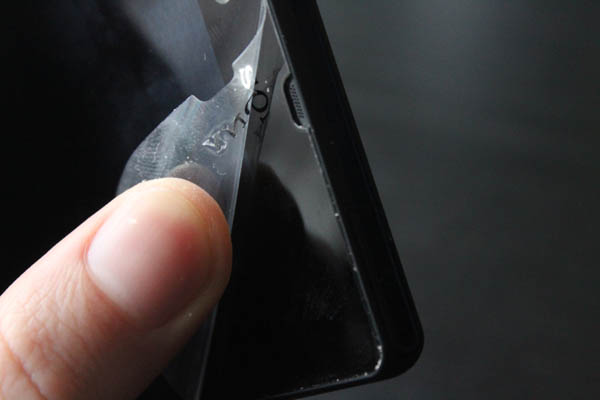 A l'avant, on retrouve donc un smartphone aux bords fins, recouvert d'un film de protection par défaut, habitude de Sony depuis quelques années maintenant. Notez que ce film est un peu paradoxal : si vous l'enlevez, vous enlevez le logo avec. Oui, Sony a fait un smartphone à 650 ? mais n'a pas gravé son logo sur la tranche supérieure : il est collé sous le film protecteur. Nous avons contacté le service de presse qui nous a confirmés que c?était bien un choix et que Sony déconseillait vivement de l'enlever : à quoi sert donc un film protecteur s'il n'est pas enlevé quand il est usé ? Mystère, surtout qu'il s'use tout de même plutôt vite, des micro-rayures sont apparues sur ce film dès 5 jours d'utilisation.