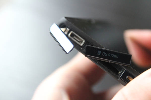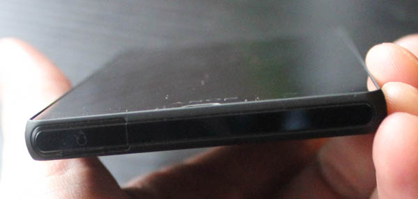 Comme cet Xperia Z est waterproof, toutes les ouvertures sont bouchées, les connectiques se retrouvent donc sous des caches. On retrouve un port microUSB MHL, un emplacement microSD, un emplacement SIM et le port casque. Il va falloir vous habituer à l'appareil : la prise microSD est indiquée par un petit logo mais les autres sont toutes parfaitement noires. Pire, les caches sont tellement bien intégrés dans la coque qu'il nous a fallu plusieurs minutes avant de trouver le port microUSB, caché dans un angle, presque invisible. Design ou facilité d'accès, il fallait choisir ? le reste est une question de routine d'utilisation.