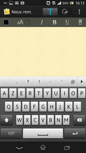D'ailleurs, un petit mot sur les SMS : Sony a conservé son mode d?édition un peu gadget mais amusant. En un clic, vous pourrez transformer votre SMS en MMS avec un petit post-it manuscrit. C'est bien fait, c'est joli et ça permet de se diversifier un peu de la concurrence : on en demande pas plus. Notez également que le clavier intelligent est fort plaisant à utiliser, fonctionnant sur le modèle de Swiftkey (il vous propose des mots sans vous obliger à les sélectionner). Il reste moins performant que le maître en cette matière, surtout pour l'apprentissage, mais c'est bien l'une des rares fois où l'on n'a pas désactivé l'aide à la frappe immédiatement.