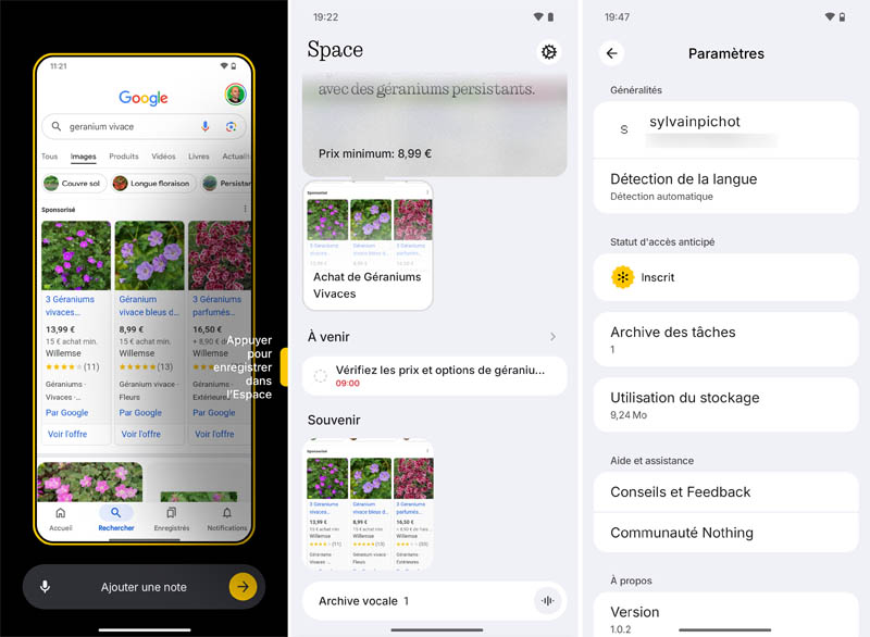 L'une des fonctionnalités d'intelligence artificielle les plus notables du Nothing Phone (3a) Pro est Essential Space, accessible via le bouton dédié « Essential Key » situé sur le côté droit de l'appareil. Cette fonction sert de hub central pour organiser les notes, les idées et les inspirations. En appuyant une fois sur le bouton, on peut capturer le contenu à l'écran tandis qu’une pression longue permet d'enregistrer des mémos vocaux qui sont automatiquement transcrits en texte. Une double pression donne accès à l'espace Essential Space. L'IA analyse ensuite ces captures et notes pour générer des suggestions personnalisées et des points d'action. Par exemple, si vous prenez en photo un livre qui vous intéresse, vous pouvez demander au système de vous rappeler de l'acheter. Nothing prévoit d'enrichir cette fonctionnalité dans les mois à venir avec des options comme Camera Capture, Smart Collections, Focused Search et Flip to Record.