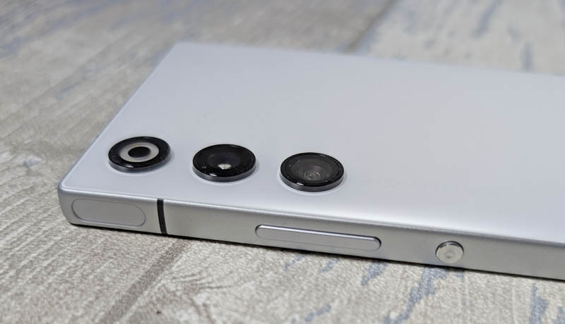 Les capteurs photo dépassent à peine du dos. Ils sont alignés verticalement, à l’image de ceux des Galaxy S25 dans un style épuré. Le module le plus haut intègre un insert LED dont on peut personnaliser les couleurs via le menu prévu à cet effet dans les paramètres de l’appareil. On apprécie beaucoup le côté nacré du dos du smartphone.