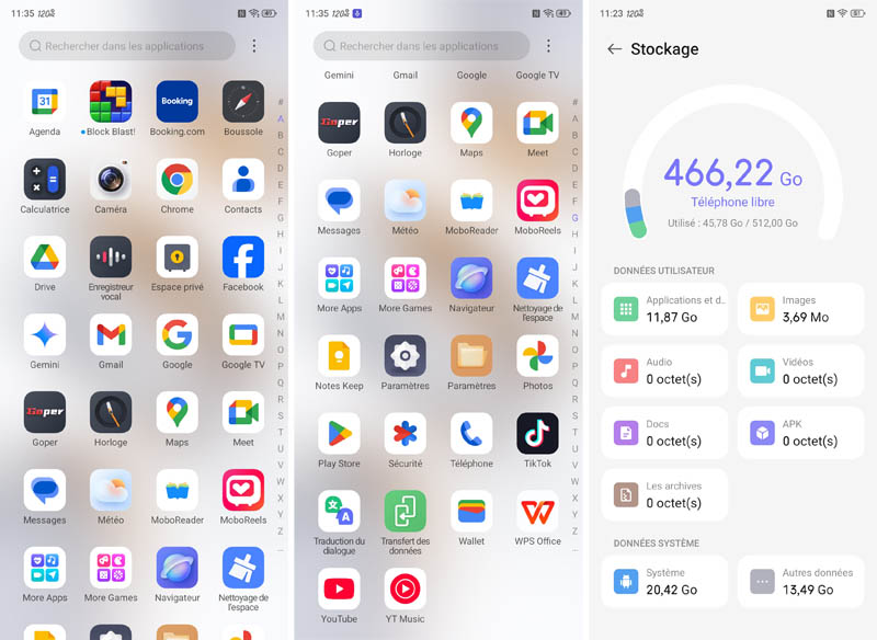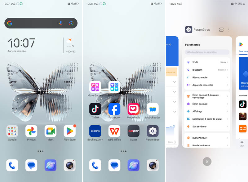 L’interface est fluide et personnalisable, avec la possibilité de modifier les thèmes, icônes et fonds d’écran. L’organisation des paramètres est logique, facilitant la prise en main. Les applications préinstallées se limitent à quelques outils RedMagic (gestionnaire de jeux, optimisation des performances, enregistrement d’écran), sans bloatware inutile.