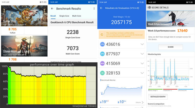 En usage quotidien, la navigation dans l’interface est instantanée, les applications se lancent sans délai et le passage d’une tâche à l’autre se fait sans accroc. Le RedMagic 10 Air se positionne ainsi comme un choix de premier plan pour les gamers et les utilisateurs intensifs.