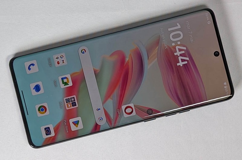 La dalle est compatible HDR10+. Les modèles capables de cela ne sont finalement pas si légion. On peut ainsi profiter d’une excellente gestion des contenus HDR dynamiques pour les plateformes qui proposent ces formats. Officiellement, Motorola annonce une luminosité maximale de 2000 cd/m². Cela suffit largement pour en profiter en extérieur même en cas de plein soleil. Bien entendu, un capteur de luminosité ambiante permet de gérer automatique celle de l’écran. Il a une définition de 1220x2712 pixels qui est fixe.