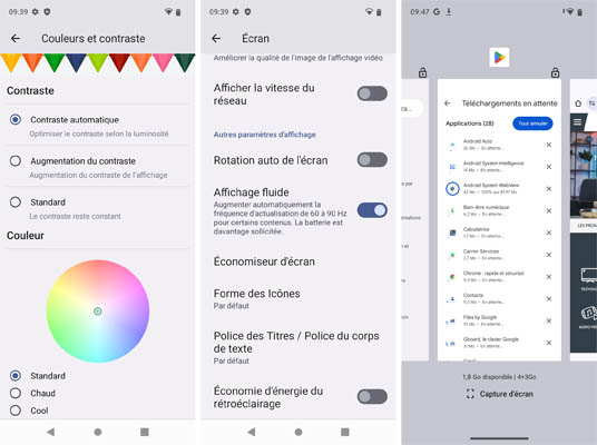 Dans les paramètres, il est possible d’activer la luminosité adaptative. Un mode Confort des yeux est également disponible. On peut modifier le rendu du contraste. C’est assez efficace.