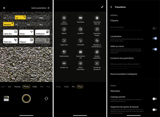 L’interface de l’application Appareil photo se montre de manière assez classique, mais regorge de fonctionnalités. Comme évoqué plus haut, le mode de couleurs naturelles Zeiss est immédiatement disponible, à côté d’autres options comme le flash, Google lense, HDR, mode Macro. Les niveaux de zoom sont proposés sous la forme d’une barre juste au-dessus des différents modes de prises de vue qui sont, de gauche à droite, Sports, Nuit, Portrait, Photo, Vidéo, Pro et Plus. Ce dernier permet d’accéder aux autres modes : Haute résolution, Panorama, Document Ultra HD, ralenti, accéléré, Exposition longue, Super Lune, Ciel étoilé, Paysage et architecture, Gastronomie, Autocolllant AR, Double exposition, Double vue, Photo dynamique et Portrait de groupe AI. Il y a donc largement de quoi faire. Le module est personnalisable pour intégrer un ou plusieurs modes sur la page principale. Plusieurs styles Zeiss sont possibles pour les portraits : Biotar, Sonnar, Planar, Distagon, Cinematic. Par rapport au X80 Pro, il y a deux styles supplémentaires : Cine-flare et Naturel. Ils sont modulables, offrant ainsi la possibilité de varier leur intensité.