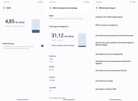 Les paramètres sont nombreux et bien organisés. L’interface s’est montrée fluide et elle est assez agréable à utiliser au quotidien. Comptez un peu plus de 30 Go occupés par le système et les applications préinstallées sur les 256 Go théoriquement disponibles.