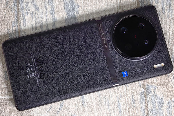 Le design du smartphone Vivo X90 Pro reprend les grandes lignes de son prédécesseur, le X80 Pro dont vous pouvez lire notre test complet, tout en cultivant les différentes. En effet, on a droit à un smartphone qui utilise du cuir végan pour sa coque arrière, étant divisée en deux parties séparées par une ligne, au trois-quarts de la hauteur du mobile.