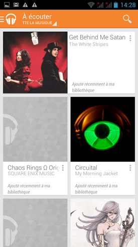 Concernant les fonctions musicales, vous pouvez opter pour "Musique" ou "Google Music". Le premier est un baladeur local (qui vous donne accès à votre répertoire de MP3 stockés dans la mémoire du mobile ou sur la carte microSD). Le second enrichit le premier de votre répertoire stocké sur le cloud. Si vous disposez d'un plan data de 1 Go ou plus par mois, l'expérience Google Music est surprenante, car les suggestions de Google sont parfois étonnantes. La prise jack 3,5 mm est sur la tranche supérieure du mobile : la pertinence de cet emplacement fait débat. Le kit main libre stéréo fourni avec le Cink Five n'est pas d'une grande qualité et l'absence de coussinet rend l'écoute prolongée douloureuse. Nous ne saurions trop vous conseiller d'opter pour un autre casque. Attention, certains kits main libre stéréo avec commandes déportées (pour iPhone notamment) ne fonctionnent pas bien avec ce mobile (absence de stéréo tant que le bouton central n'est pas pressé).
