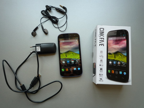 Comme vous le constatez, ici aussi, pas de fioriture. Tous ces éléments sont classiques, même si nous continuons d'apprécier le fait de proposer non pas un adaptateur secteur vers microUSB, mais bien un ensemble en deux parties, avec d'une part le câble de connexion et de l'autre un adaptateur secteur vers USB qui vous servira dans d'autres occasions. Nous reparlerons en quatrième partie des écouteurs. Juste un léger détail : le Cink Five est équipé d'une batterie 2000 mAh. A l'usage, elle s'avère un peu juste pour tenir toute une journée, notamment si votre mobile se connecte sans cesse à vos mails, à Google+, à Facebook et à Twitter.