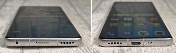 En faisant le tour de l’appareil, on note la présence des boutons de mise en veille et celui qui permet de gérer le volume, sur le profil droit. Sur le profil supérieur, il y a l’émetteur infrarouge qui permet de transformer le mobile en une télécommande universelle, comme tous les autres smartphones de la marque. Il y a également un vrai haut-parleur avec la mention du partenaire audio : Harman/Kardon. Il y a également un microphone. Enfin, sur la tranche inférieure, on trouve un son haut-parleur pour un son stéréo, le connecteur USB-C, un microphone et le tiroir à cartes. Celui-ci ne supporte pas de carte mémoire pour étendre la capacité de stockage mais peut accueillir uniquement une ou deux cartes SIM simultanément.