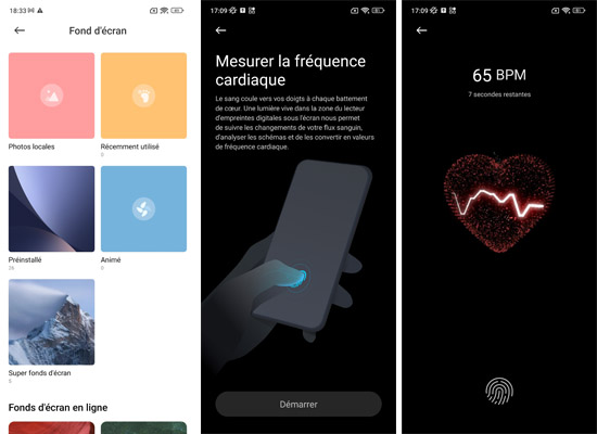 Comme évoqué un peu plus haut, le Xiaomi 12 dispose de deux vrais haut-parleurs signés Harman/Kardon. Le son est donc stéréo et s’avère, à l'écoute, tout à fait satisfaisant. Il est plutôt équilibré avec une cohérence agréable et sans distorsion. Il peut tout à fait suffire pour regarder des films ou des séries mais également pour écouter de la musique même si, bien entendu, une vraie enceinte pourrait proposer des basses plus importantes et une puissance toute autre. Etonnamment, comme le Xiaomi 12 Pro, le Xiaomi 12 n’est pas officiellement certifié étanche à l'eau et à la poussière comme c’est le cas des autres modèles Premium et haut de gamme alors que certains de milieu de gamme proposent désormais cette caractéristique. Officiellement, le mobile peut résister à des éclaboussures…mais cela n’est pas vraiment satisfaisant à ce niveau de prix. Le OnePlus 10 Pro, un modèle pourtant haut de gamme, concurrent et proposé un tout petit peu plus cher que le Xiaomi 12, n’est pas non plus officiellement certifié IP67/68. Sous l’écran, il y a un lecteur d’empreinte digitale. Celui-ci est placé à seulement 1,5 cm du bord inférieur du smartphone ce qui, pour nous, est un peu trop bas. Nous préférons une position à 3,5 cm du bord inférieur pour un placement plus naturel du pouce sur le capteur. Côté réactivité et authentification, rien à redire puisque le lecteur s’est parfaitement comporté pendant notre phase de test. Original, le lecteur d’empreinte digitale peut servir à afficher la fréquence cardiaque d’une personne en temps réel. Il faut aller dans les paramètres et dans la rubrique Fonctionnalités spéciales pour y accéder. Après, il suffit de laisser le pouce appuyé pendant 15 secondes sur le capteur pour obtenir un résultat.