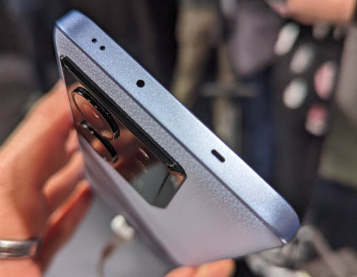 Sur le profil droit, il y a le bouton pour mettre en veille le mobile ainsi que le double bouton pour gérer le volume. Ils sont naturellement accessibles, sans forcer. Sur la partie supérieure, il y a plusieurs microphones ainsi qu’un émetteur infrarouge. Ce dernier permet, comme sur tous les autres mobiles de la marque, de le transformer en une télécommande universelle pour piloter une télévision, un lecteur DVD/Blu-ray, une console de jeux, etc. Enfin, sur le profil inférieur, on trouve le connecteur USB-C, un haut-parleur et le tiroir à cartes SIM. Rappelons que le mobile est compatible eSIM.