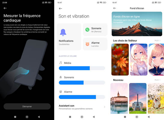 Comme sur tous les autres mobiles de la marque Xiaomi, en faisant glisser le doigt depuis le côté gauche du poinçon du capteur photo frontal, on tire les notifications et en réalisant le même geste depuis le côté droit, on fait apparaitre les raccourcis ainsi que l’outil de gestion de la luminosité de l’écran. Parmi les fonctions spéciales, outre la barre latérale et les fenêtres flottantes, il est également possible de profiter d’un second espace sécurisé pour mettre à l’abri des regards indiscrets certaines applications ou documents. Un assistant caméra frontale est également disponible afin d’apporter des fonctionnalités supplémentaires avec le capteur installé à l’avant de l’appareil.