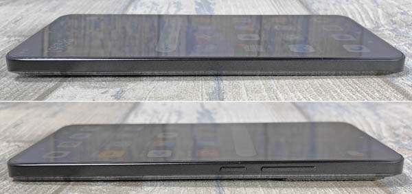 Sur le profil droit, il y a le bouton pour mettre en veille et le double bouton pour gérer le volume. Sur le profil supérieur, il y a deux microphones, un haut-parleur ainsi qu’un émetteur infrarouge. Cet élément est présent sur tous les mobiles de la marque, ainsi que leurs cousins, les POCO. Il permet de transformer le téléphone en une télécommande universelle via l’application idoine préinstallée. C’est extrêmement pratique et peut faciliter la vie. Enfin, sur le profil inférieur, il y a un deuxième haut-parleur, le connecteur USB-C, un troisième microphone et le tiroir à cartes SIM. Celui-ci peut en contenir deux simultanément, mais n’accepte pas de carte mémoire micro SD pour étendre les capacités de stockage interne du téléphone. Le smartphone est compatible avec la technologie eSIM. Le châssis est en plastique ne laissant pas apparaître les antennes qui sont installées sur tout le tour du mobile.
